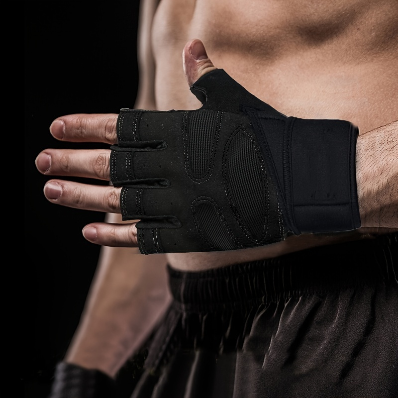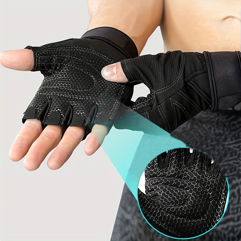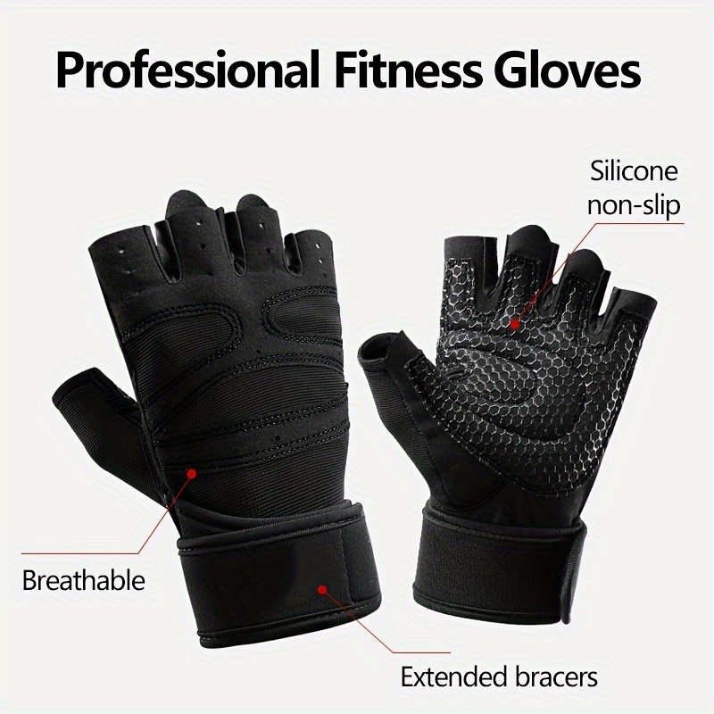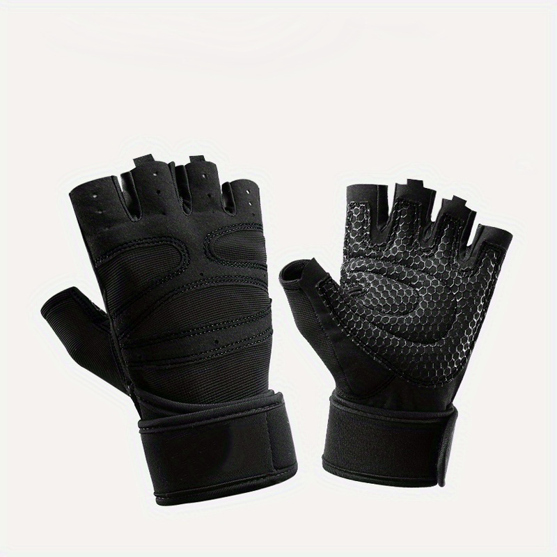 1 Pair Unisex Sports Gloves – Breathable Half-Finger Design with Hook-and-Loop Closure, Durable Knit Fabric for Cycling, Fitness & Outdoor Activities (Black), Cycling Accessories, Gym Essentials, Adjustable Fit, Comfortable Fit, Gym Goers