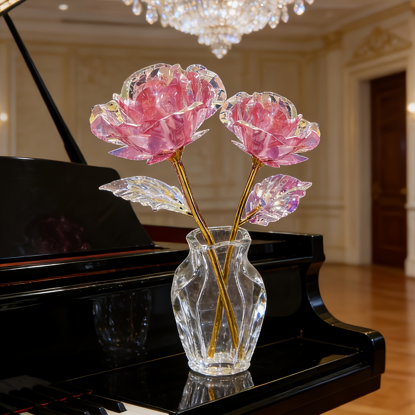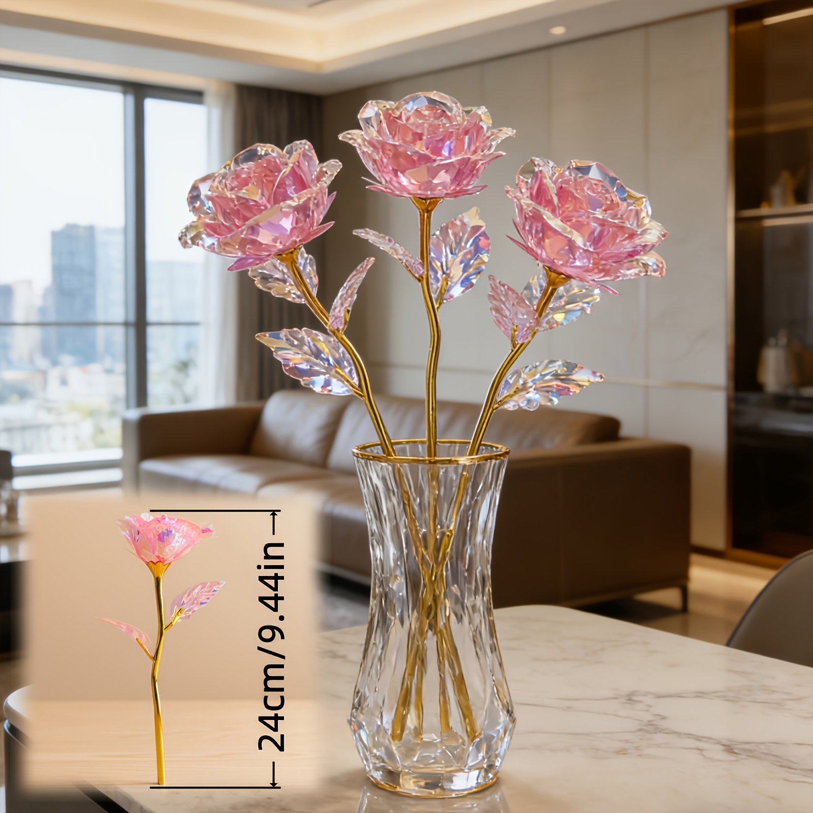 11pcs Everlasting Crystal Rose Bouquets – Shiny Plastic Flowers Suitable for Wedding, Valentine’ Day, Home Party Decor with Realistic Roses & Foliage, Low-Maintenance Elegant Centerpieces for Table Centerpieces, Year-Round Decoration