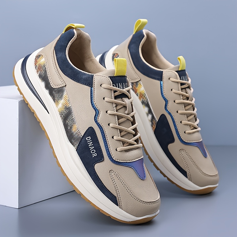 Casual Athletic Shoes for Men Featuring a Color Block Design And Chunky Style, Equipped with DINAOR Details. They Have a Lightweight, Non-Slip Sole Suitable for Everyday Use And Street Fashion