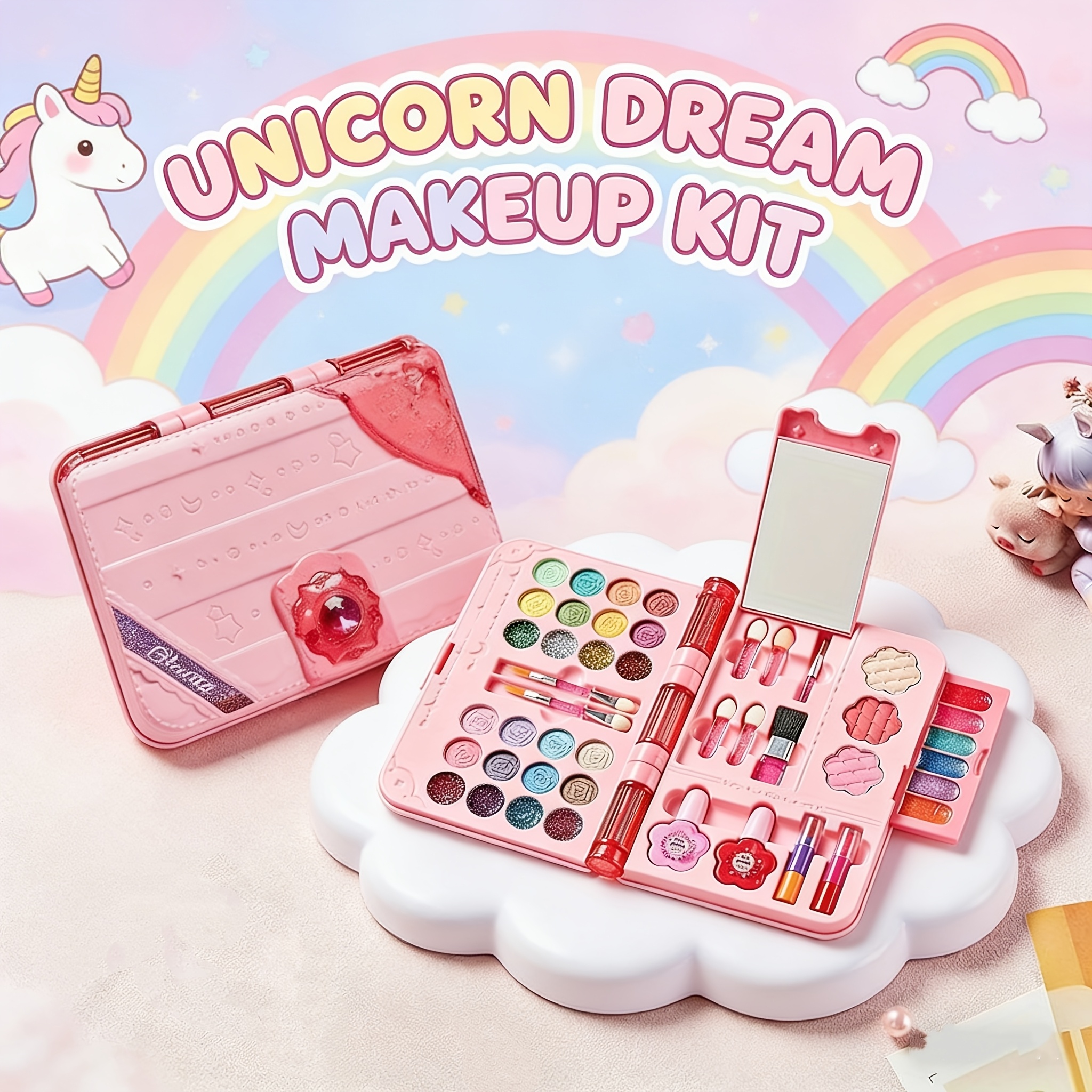 Makeup Set, Princess Makeup Box, Birthday Gift, Washable Cosmetics, with Mirror